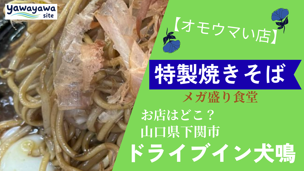 山口県下関市の地元の皆さんから愛される「焼きそば」「刺身定食」を提供するお店、メガ盛り食堂の「ドライブイン犬鳴」さんを紹介しました。